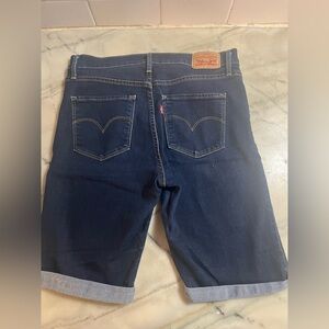 Classic Levi's jean shorts in dark blue. Perfect for everyday wear. Timeless style with a comfortable fit.