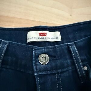 Stylish Levi's bootcut jeans. Dark blue color. Perfectly slimming fit. They are size 8 and are in good used condition . Bundle with others for a great price and to save on shipping .