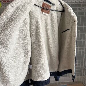 Classic Levi's jacket with sherpa lining. Dark blue color. Ideal for cool weather.