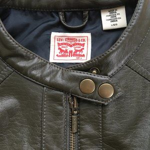 Levi's Dark Green Moto Jacket with Faux Leather; Gold Hardware and Button Collar. Like New.