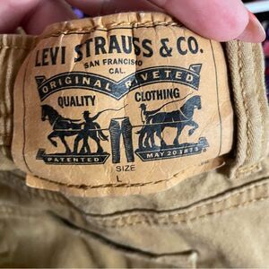 Gently worn boy's size large levi's jogger style jeans. Tan color, elastic waistband, comes from a smoke free home, bundle with other items to save and minimize shipping cost.