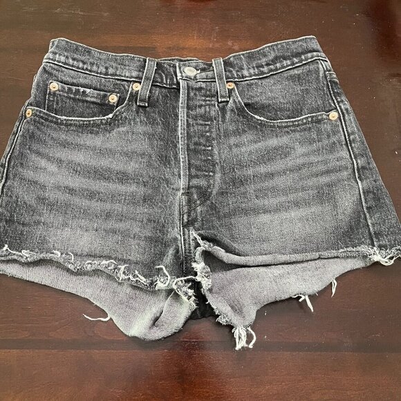 Levi's Dark Wash 501 Shorts Raw Hem Button Fly Size 26 Bootie