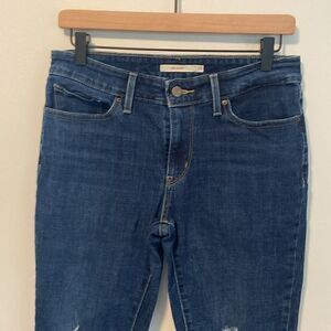 Levi's Dark Wash 711 Skinny Distressed Knee High Rise Jeans Size 29