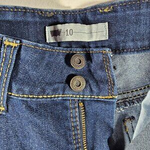 Offered here is a pair of Levi's Denim Capri Jeans Women's Size 10 Stretch Dark Wash Button Pockets 28x19L"