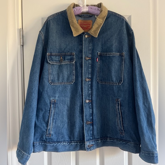Levi's Denim Jacket with Beige Corduroy Collar Men Size XXL