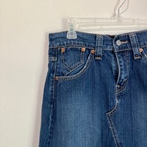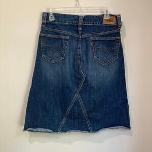 Levi's Denim Jean Skirt Causal Raw Edge Frayed Hem Asymmetrical Stitching Sz 8
