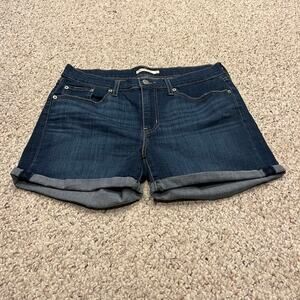 Levi's Denim Mid Length Shorts Womens Sz 31 Inseam 4 Dark Wash Cuff Stretch