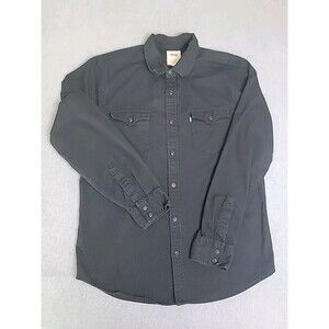 Levis Denim Shirt Mens L Black Double Pockets Long Sleeve Mid Weight Western Dad