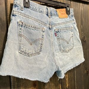 Levi's brand denim shorts. Size 7. High rise / high waist. Relaxed fit. Vintage look. Classic style. 100% cotton. Casual. Preloved. Please see all photos for condition.