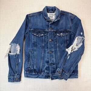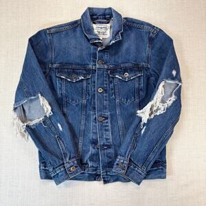 Levi's Denim Trucker Jacket Crafted Size S Faded and Distressed Punk Rock Y2K