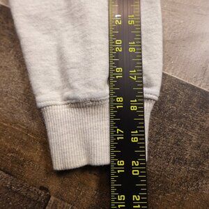 • Gray sweatshirt sleeves add contrast and easy movement
