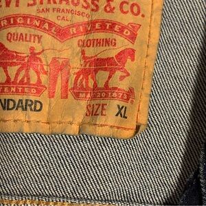 Levi's Denim Trucker Jacket Mens Size XL Dark Blue Wash Long Sleeve. Pre owned, excellent used condition, minor wear, no holes or stains. Stylish Levi's denim jacket in dark blue. Ideal for layering and casual wear.
