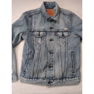 Levi's Denim Trucker Jacket Men's Small Blue Medium Wash Distressed S40116