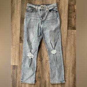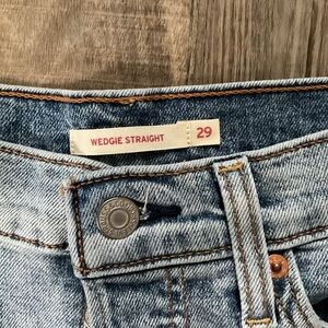 Levis Denim Wedgie Straight Light Blue 29 Button Fly Distressed Jeans