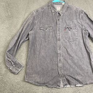 Levi's Denim Western Pearl Snap Shirt Men's L Standard FIt Rodeo Cowboy SEE