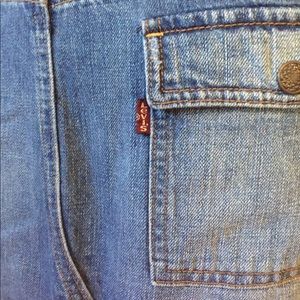 Levi's Denim distressed mini skirt. Only worn twice. In like new condition. All pockets are fully functional. Zipper closure with 2 snaps. Size 26 This skirt is beyond sexy!! Be ready to show some leg