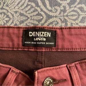 Levis Denizen High Rise Super Skinny Jeans Burgundy Size 14 Waist 32