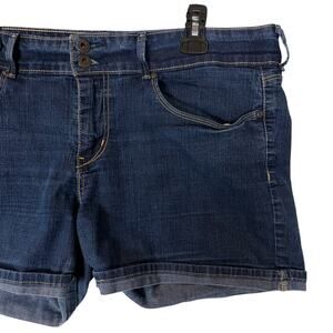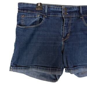 Levis Denizen Jean Shorts Women 16 Blue Denim Stretch 5-Pockets High-Rise Cuffed. Please see photos for measurements.