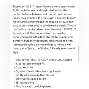 Levi’s Distressed 511 jeans. 36x36. Excellent condition. Smoke free home.