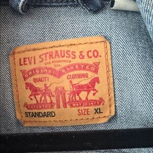 Casual Levi's denim jacket. Distressed details. Perfect for everyday wear.