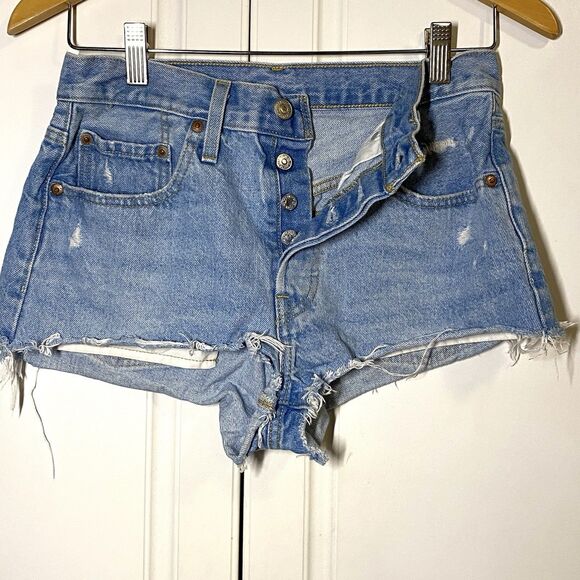 Levi’s Distressed Cut-Off Button-Fly Jean Shorts Blue Country Festival SZ 27