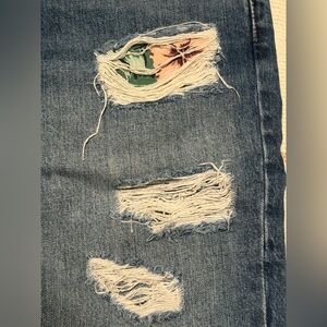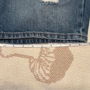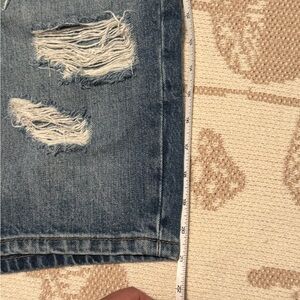 Stylish distressed denim shorts for men. Perfect for casual outings. Features a classic blue color with a rugged look.