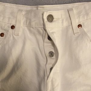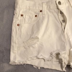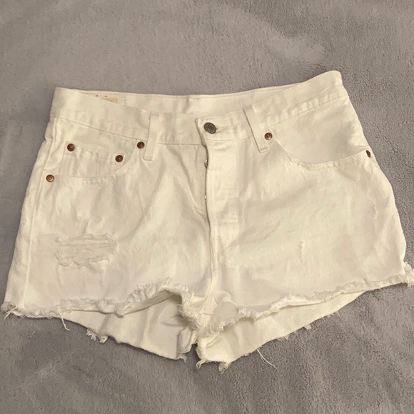 Levi’s 501 high rise, distressed jean short. Size 28. Button closure. Worn one time. Mint condition. No marks or stains.