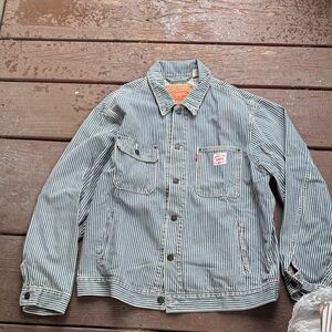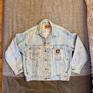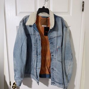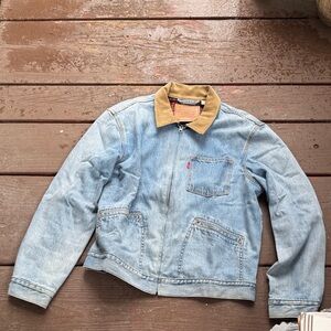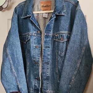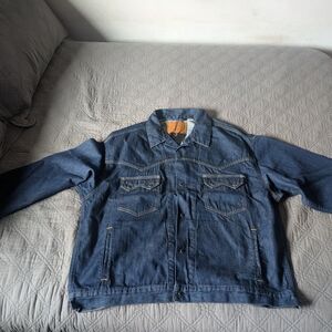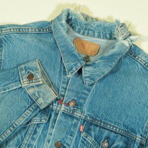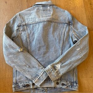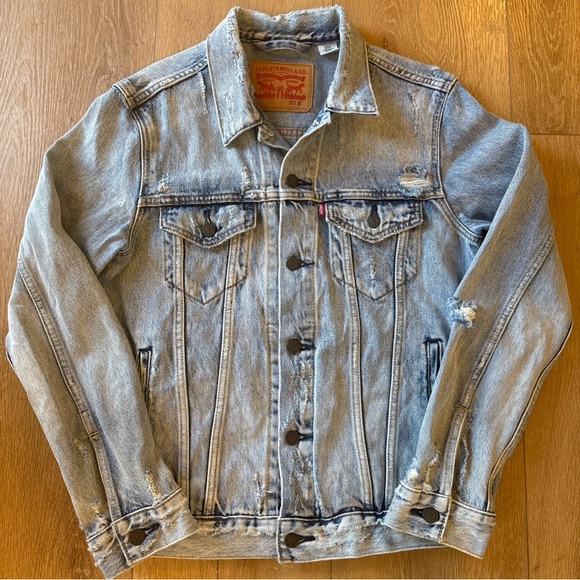 Stylish Levi's denim jacket with a distressed look. Ideal for casual wear and layering.