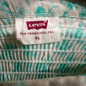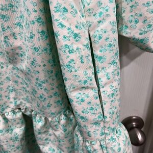 Worn once, EUC. Square neckline, has two lined side pockets and puffed sleeves. Sleeve cuffs have elastic for close fit.