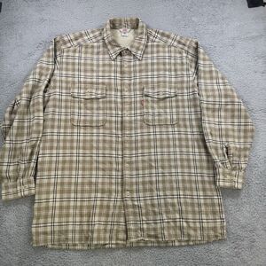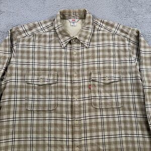 Levi's Dry Goods Shirt Men's L Beige Plaid Long Sleeve Button Up Flannel