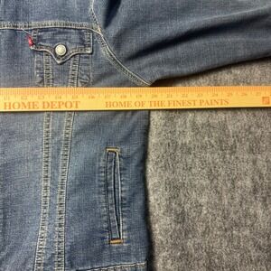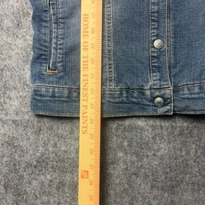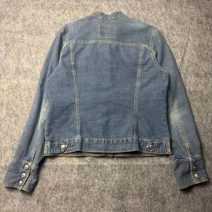Original Levi's Easy Rider Jean Jacket, size Medium. This iconic denim jacket is made from a durable blend of 87% cotton, 12% polyester, and 1% Lycra spandex, offering both comfort and a classic fit. Made in the U.S.A., it features the timeless Levi's styling with button-front closure and chest pockets. A versatile piece perfect for layering year-round. Excellent pre-owned condition with no significant flaws.