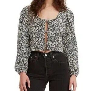 NWT Levi's embry black floral tie front balloon long sleeve blouse. NO TRADES.