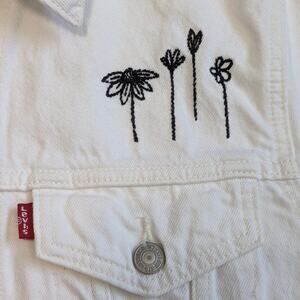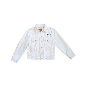 Levi's Ex Boyfriend Trucker Jacket - white with black flower embroidery