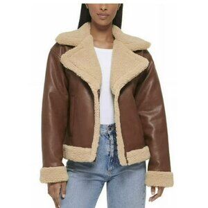 Levis Faux Leather Aviator Jacket Shearling Brown NWT