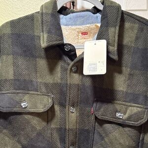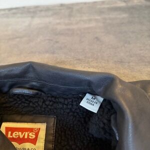 Levis Faux Leather Sherpa Lined Trucker Jacket Black Mens Medium LM1CU993 NEW
