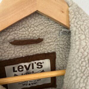 Levis Faux Suede Bomber Jacket Womens XL Brown Sherpa Lined Pockets Y2K