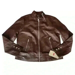 Levi's Faux-Leather Latch Collar Moto Racer Jacket in Chocolate Brown-Large NWT