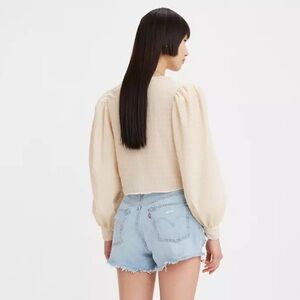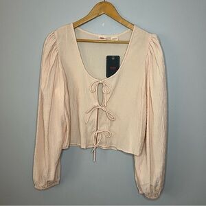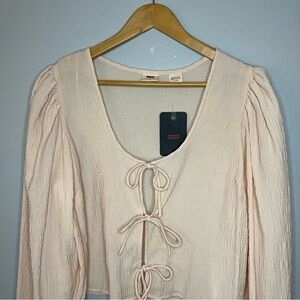 Levi’s Fawn Tie Ruched Stripe Sunny Cream White Blouse Size XLarge NWT