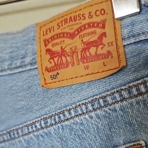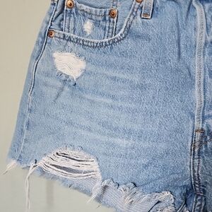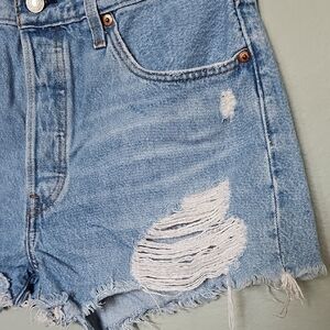 Levi's Festival Distressed 501 Size 29 Button Fly Light Blue Ripped Denim Shorts