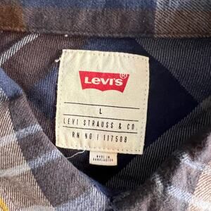 Levi’s Flannel Button-Down Shirt Men’s L – Blue Brown Plaid 100% Cotton