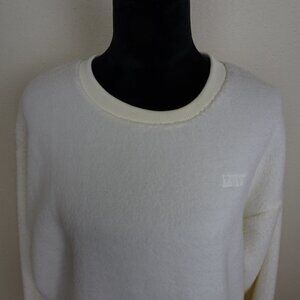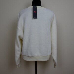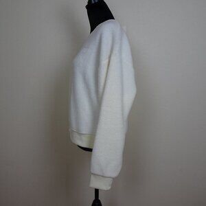 A warm pullover sweatshirt with a cozy polar fleece construction