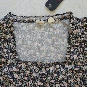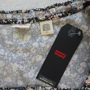 Levi's Women's Joella Short Sleeve Blouse - "Floral Obsidian" - Square neckline with ruffle around edges - Button front - Cropped - 100% cotton