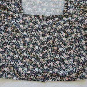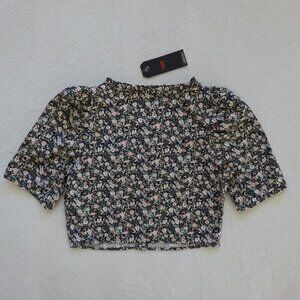 Levis Floral Cropped Blouse Top Womens Size M Multicolor Puff Sleeves