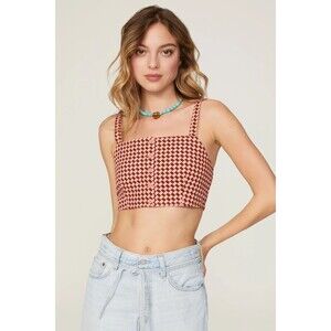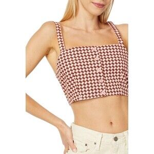 Levi's Geometric Checkered Crop MED Pink Brown Knit Retro Y2K Button Front Tank
