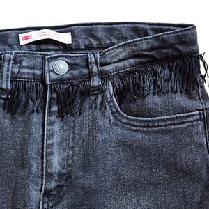 Levis Girls 720 High Rise Super Skinny Jeans Size 14 Black Washed Fringe Waist