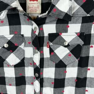 Levis Girls Boys Unisex size Small Plaid Long Sleeve Snap Button Heart Shirt
