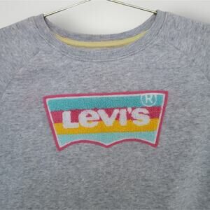 Levi's Girls' Crewneck Sweatshirt Size Medium M Gray Rainbow Terry Cloth Logo