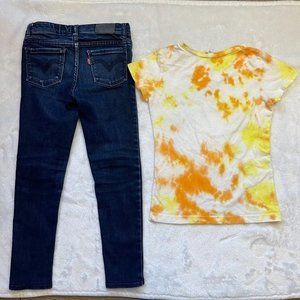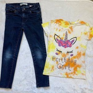 Levi's Girl's Dark Wash Jeans and Unicorn Birthday Girl Tie-Dye Shirt Size 6