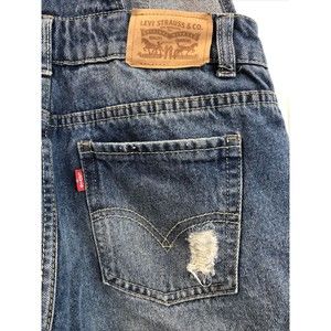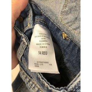 Levis Girls Denim Overall Shorts Jean Raw Hem Medium Blue 14 Regular Shortalls Print: Blue Size: 14R Features: Front and back pockets Adjustable straps Shorts