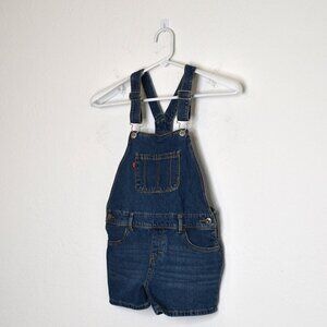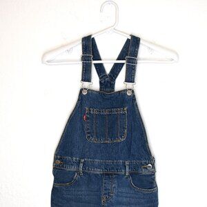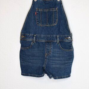 Pre-owned, good condition. No visible holes or stains. Normal signs of wear. Levis shortall. Medium wash w/ some distressing. Adjustable straps. Pockets. Size tag is missing. I estimate this to be a size girls size L 12/14 (Large) but please see pictures for measurements to ensure desired fit. Fabric feels like 100% Cotton.